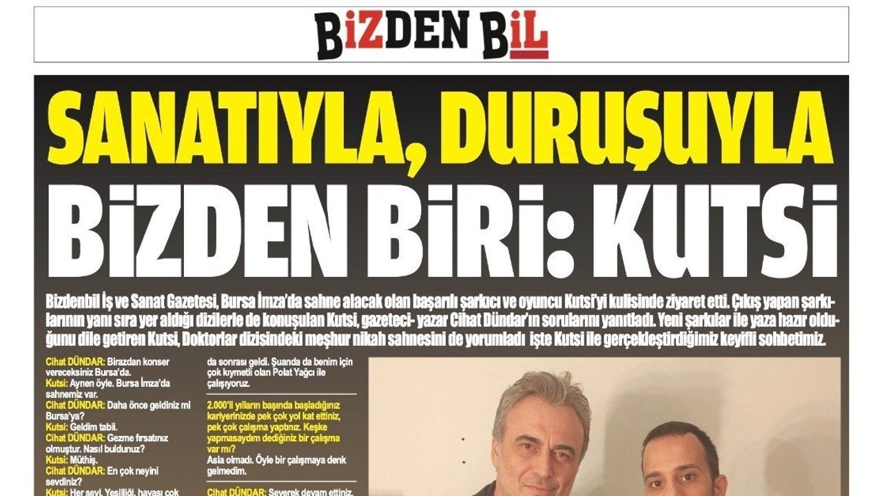 Kutsi: Aynen öyle. Bursa İmza'da sahnemiz var.